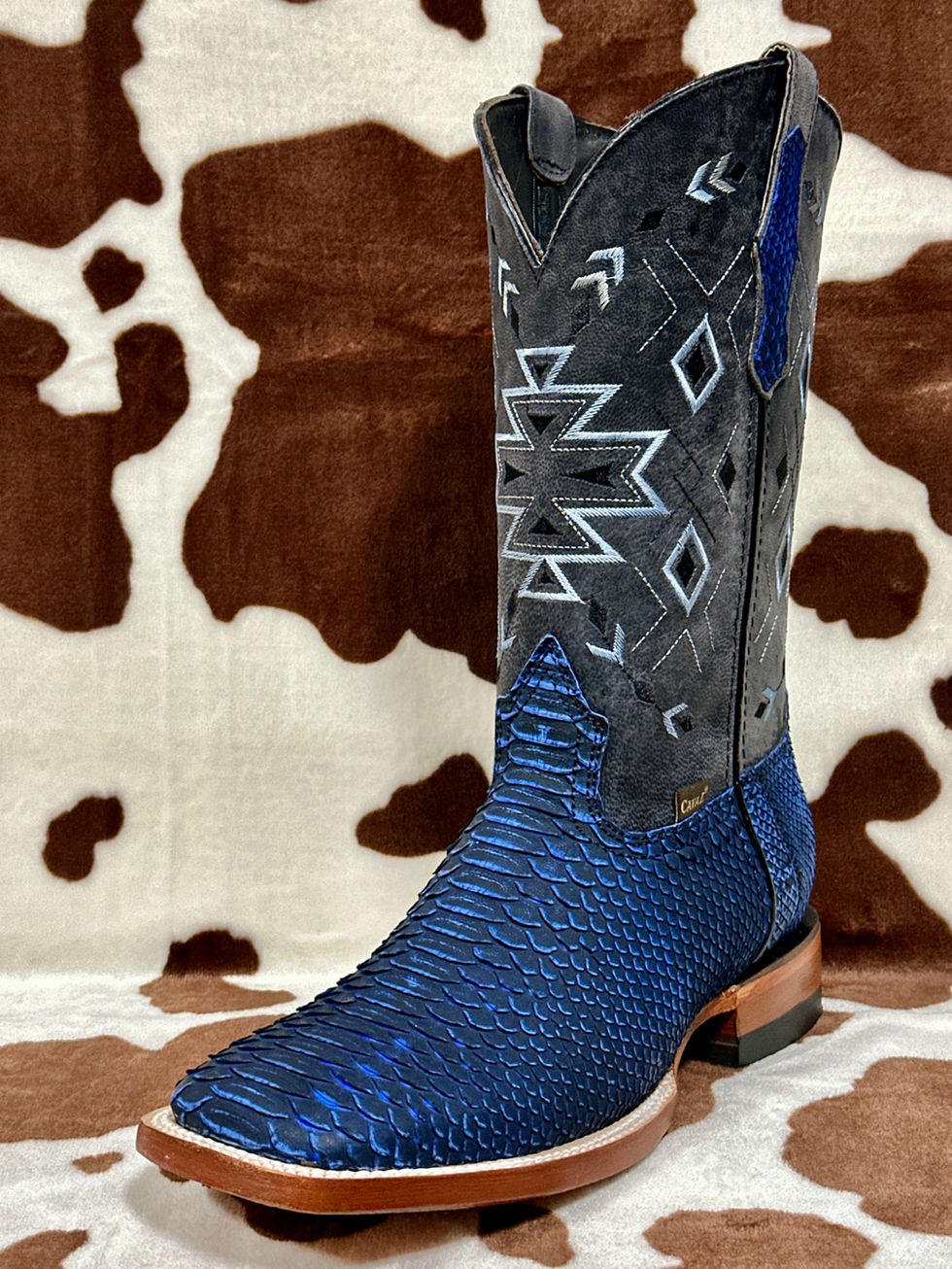 These Authentic Caval Python boots are meticulously handcrafted from genuine python skin, offering a unique and luxurious texture that stands out. These boots feature a wide square toe and a leather sole, ensuring both style and comfort. Made in Mexico, they reflect exceptional craftsmanship and attention to detail. The rich, natural patterns of the python skin make each pair distinctive, providing a bold statement for any wardrobe. Ideal for those seeking authentic exotic boots that combine tradition with modern flair.