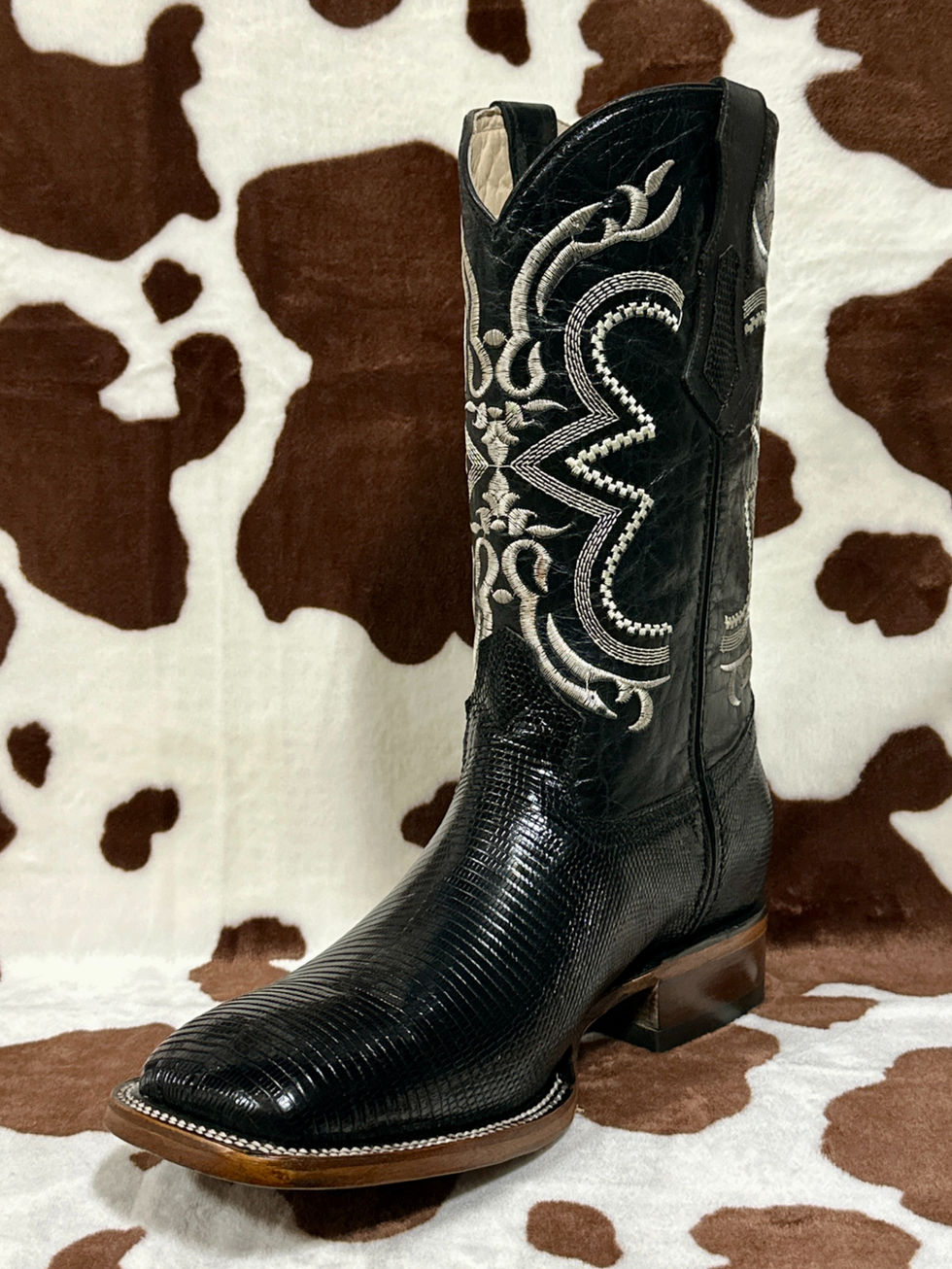 The El Malcreado Lizzar - Negro boots combine bold style with expert craftsmanship. Made from high-quality lizard-print leather, they offer a sleek black finish that adds a refined yet rugged touch. Designed for durability and comfort, these boots feature a sturdy outsole for traction and support, making them perfect for both special occasions and everyday wear. A standout choice for those who appreciate unique Western footwear.